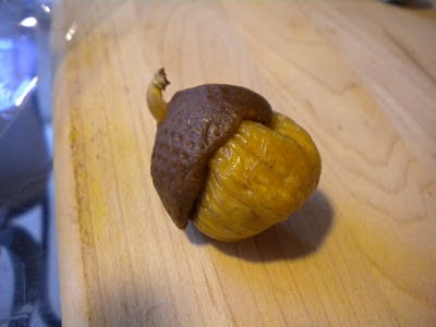 My daughter Megan made these acorns out of Marzipan and dried figs. She baked the log cake and I helped her to roll it and she completed the rest of the decoration. It was really an interesting and rewarding project for Megan and I during Christmas 2009.