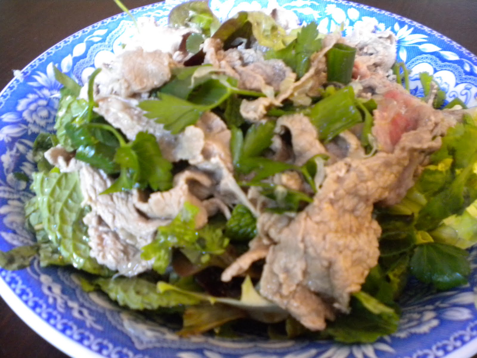 A friend from work, Cecilia Nguyen introduced me to this Vietnamese dish. On one of our many conference calls (Ceci lives in Texas), Ceci told me about the Wide Leaf Watercress and that her sister who is a fantastic cook makes a really great dish with it. So I stumbled upon this wide leaf organic watercress at the Asian Grocery store last weekend and begged Ceci for her sister's recipe. This is what she sent me and here it is, I made it for lunch this week and it was OUTTA this world !! The beef was medium rare, so tender and light. The vegetables were so fragrant. Thank You Cecilia & sister ! (I'll post your mom's shaken beef when I get to make it).