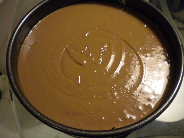 Bake at 300 deg f for 50 mins (some ovens are hotter so check it at 45 mins. The middle must be jiggly so that it won't crack when done). Turn off oven and let it sit in the oven with door closed for about 1 hour. Remove cheesecake and run a knife along the edge of cheesecake and let cool in pan until room temperature. Cover and chill 8 hours or overnight in refrigerator.