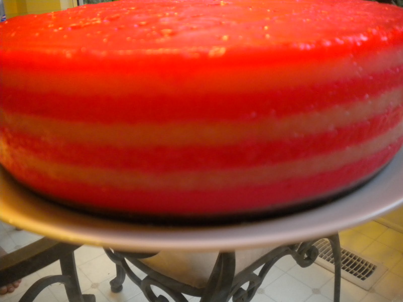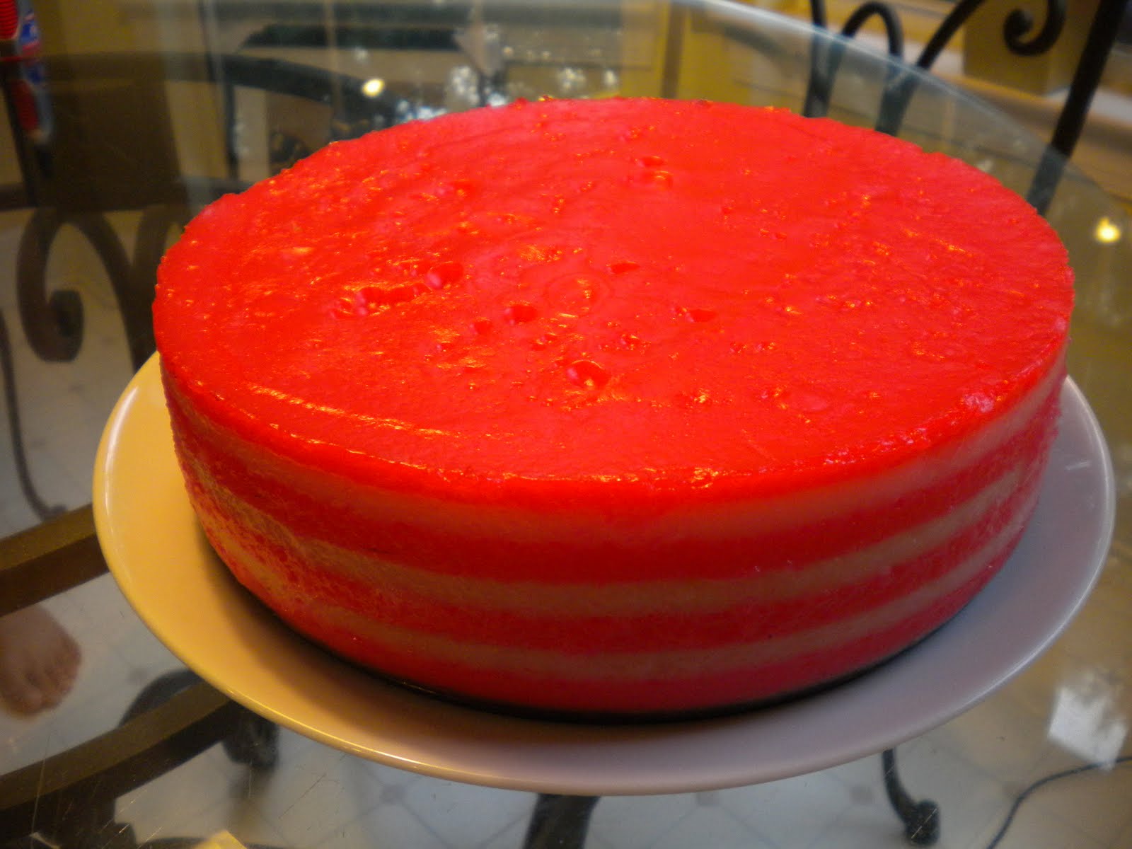Grease a springform pan with a little vegetable oil. Add 1 cup of non-color mixture over the pan. Place the pan in a steamer and steam for about 5 mins. Open the cover, add 1 cup of pink color mixture and steam for about 5 mins. Repeat this process alternating the non-color and pink color until the last round of mixture, add a little more of the red color to achieve a bright red layer for the final layer. When done, remove from steamer and let it cool completely at room temperature before cutting.