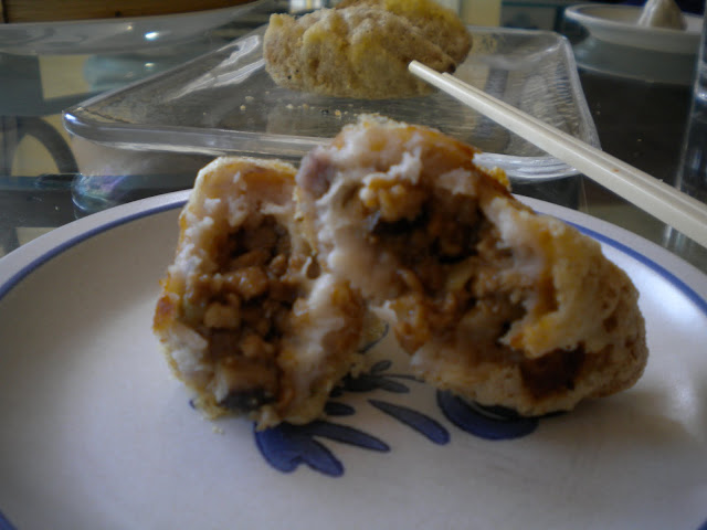 Heat oil in a pan and saute garlic. Add shrimps, meat, mushrooms and stir fry for 1 min. Add beaten egg, add starch to thicken. Add seasoning and mix well. Let mixture cool.