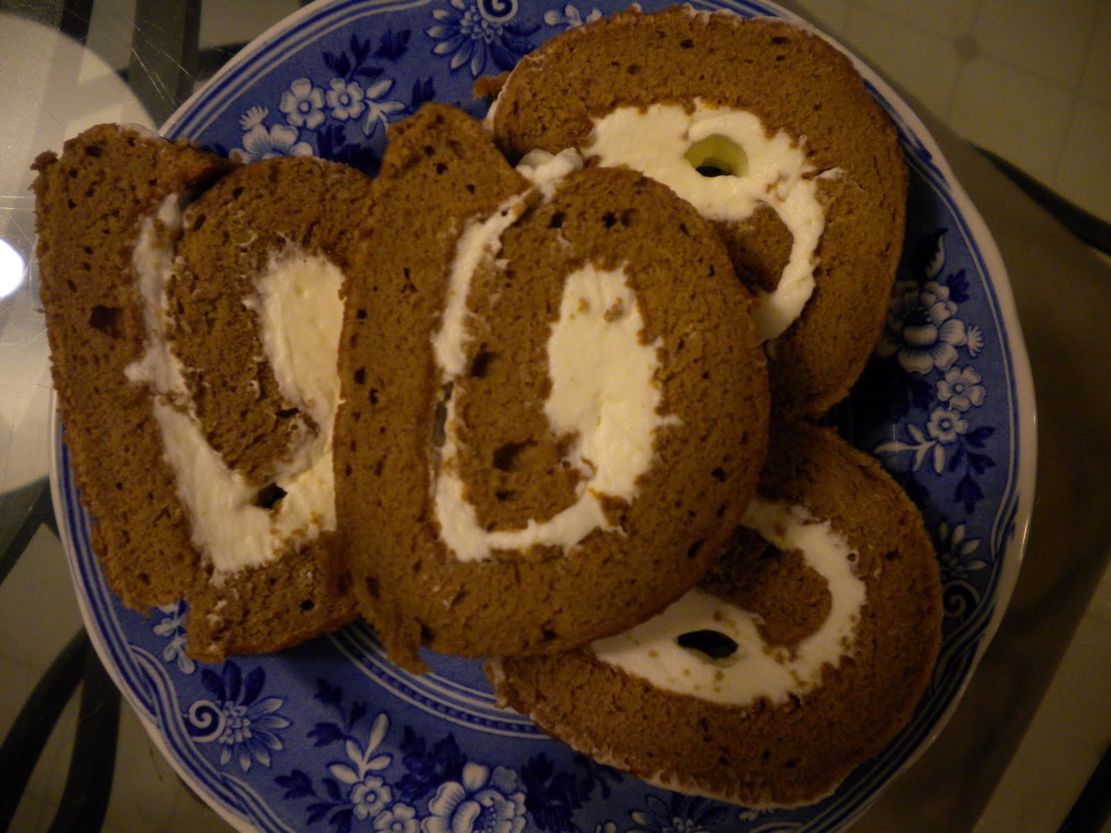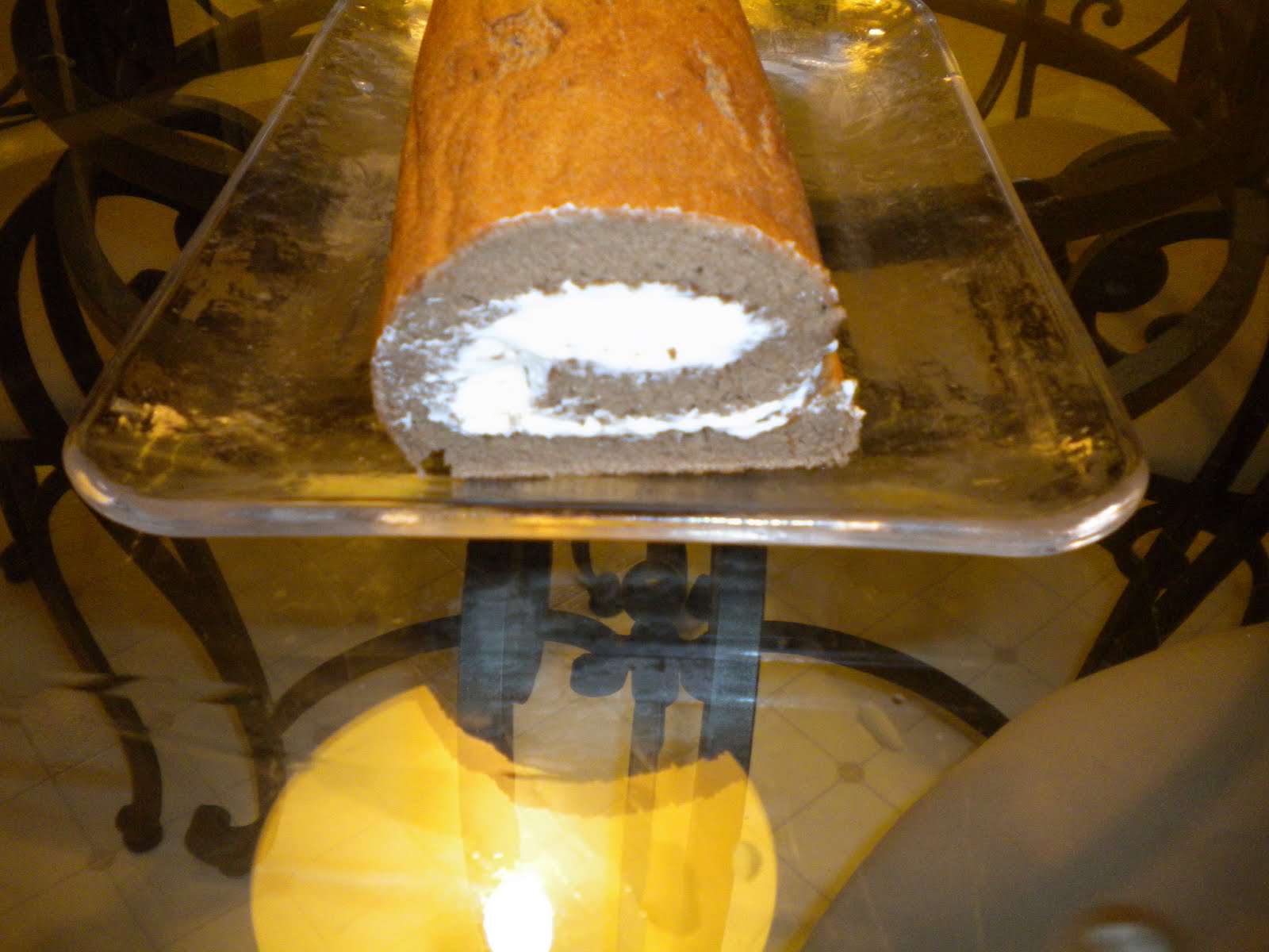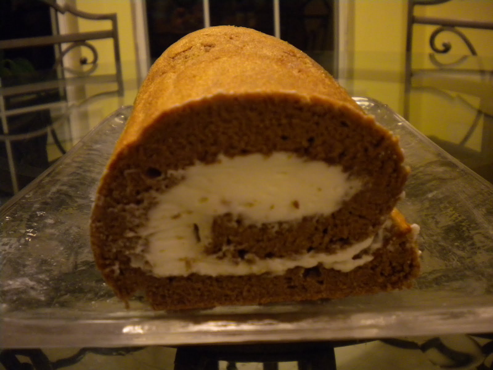 Make a whip cream with 2 cups of whipping cream and 1/2 cup of confectioners sugar. When cake is cool, unroll the cake. Invert it so that you can fill the inside of the cake with whipped cream. Roll it back into a swiss roll !
