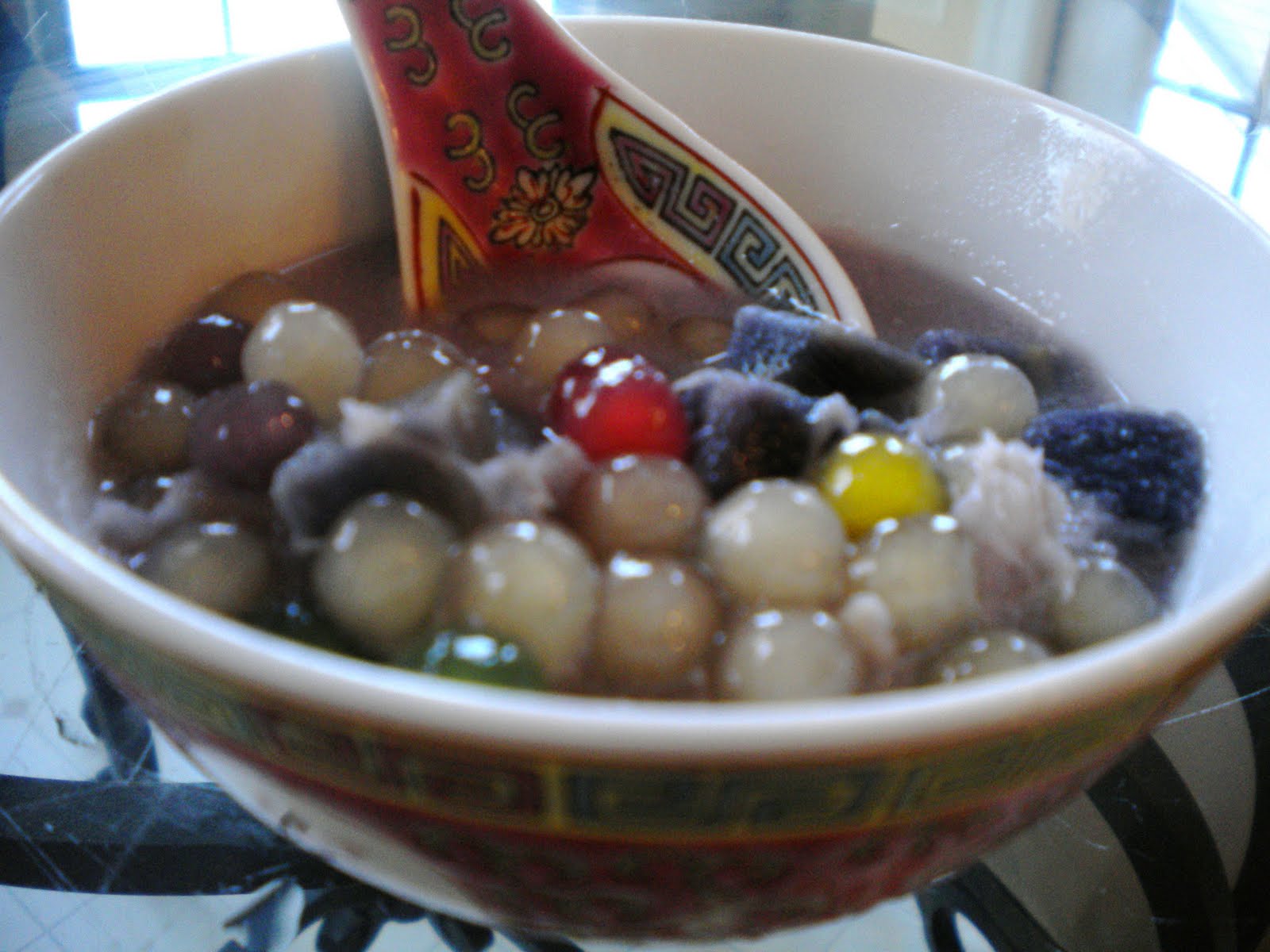 This is a popular Nonya dessert that appears more and more in cafes in the more Metropolitan cities in the United States. It is a medley of sweet potatoes, yam and a myriad of colored sago balls in a coconut base soup. Yum !