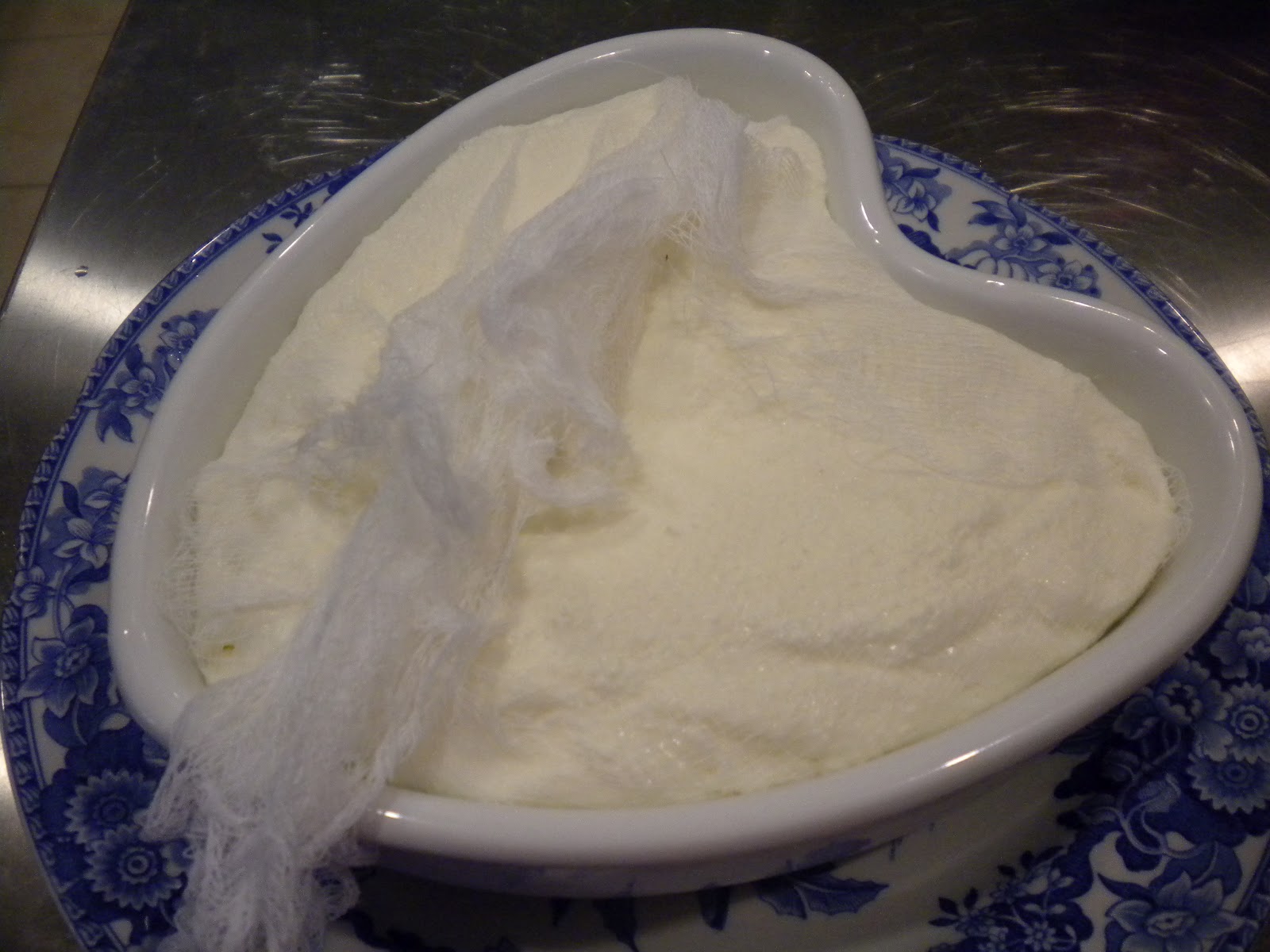 Line a heart shaped mold with cheesecloth so the ends drape over the sides and place it on a plate, making sure that there is space between the bottom of the mold and the plate for the liquid to drain. Pour the cream mixture into the cheesecloth, fold the ends over the top, and refrigerate overnight.