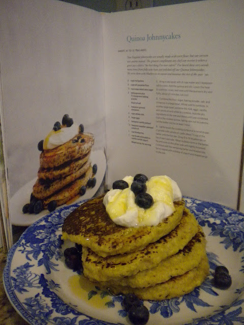 This recipe is from Andrew Weil's True Food Cookbook which my kids gave me for a birthday present. The New England Johnnycakes are usually made with cornflour but of course when you get Andrew Weil's version, it has to be special and healthy hence it is made from Quinoa.