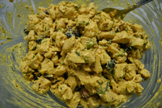 My daughter Megan made this Curry Chicken Salad when she came home from Portland during the summer break. We loved the Curry Chicken Salad from Dean and Deluca which inspired this recipe. The batch of salad was offered to her brother's school Debate Tournament and was a hit. Here is the recipe. Hope you like it.